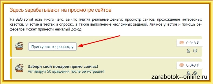 Найдите в верхней левой части сайта колонку «Зарабатывать». Серфинг сайтов и квесты – самые простые способы заработка на SEO-sprint. Выполнять такие задания можно даже с экрана смартфона в любое свободное время. Особые знания и навыки не требуются.